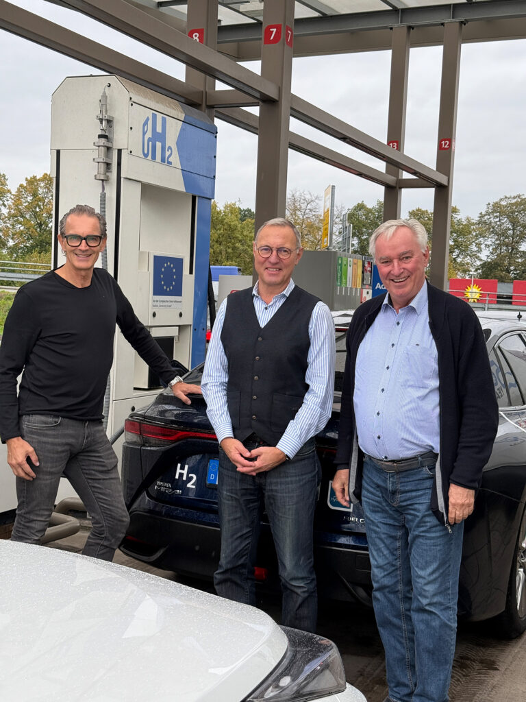 Auf der Fahrt zur Messe mit dem H2-Mirai trafen wir an der Tankstelle in Osnabrück Bernd Pitschak, den Vorstandsvorsitzender des Deutschen Wasserstoffverbandes. Unterhalten konnten wir uns nur kurz – denn das Tanken geht einfach zu schnell!