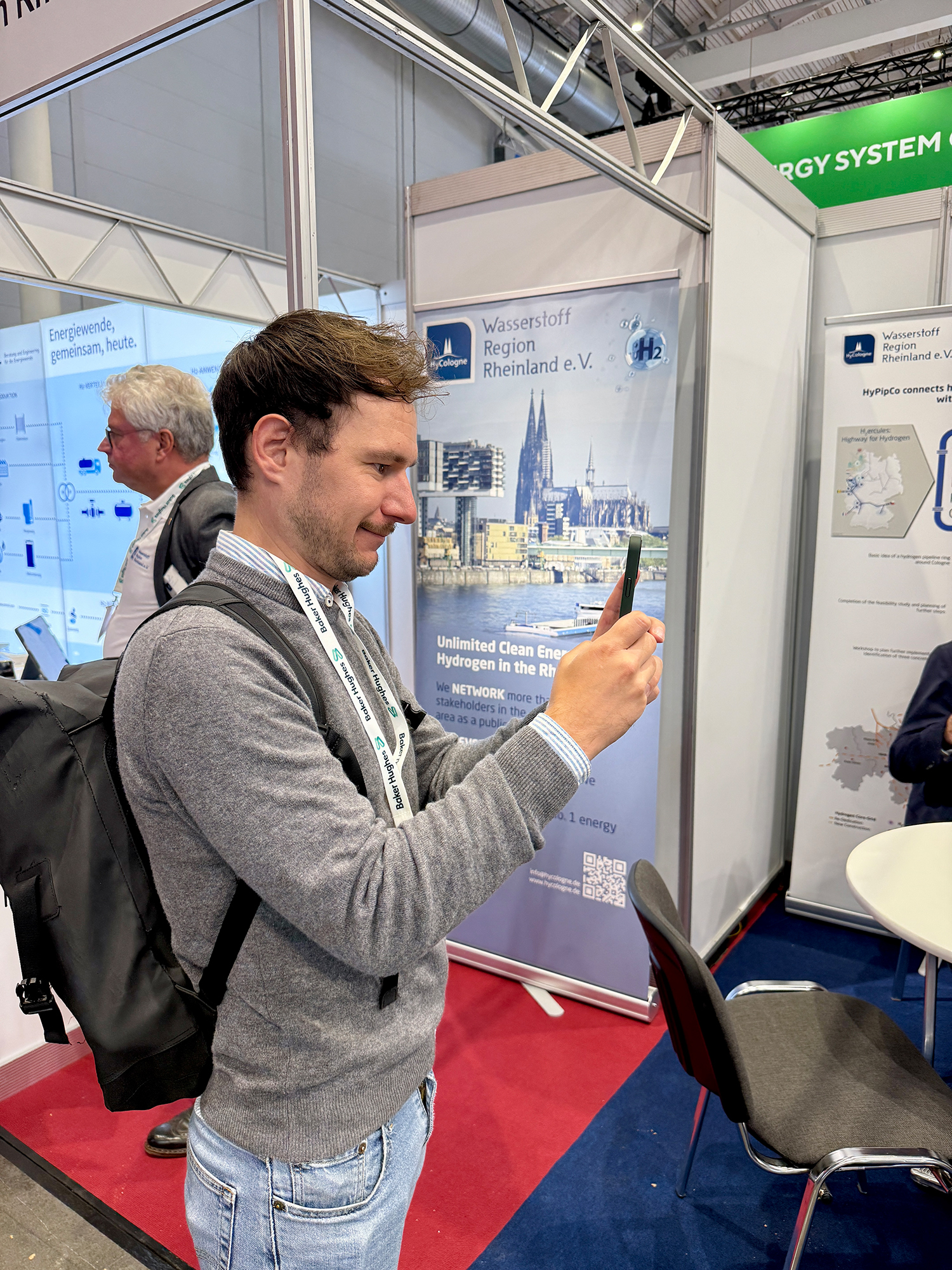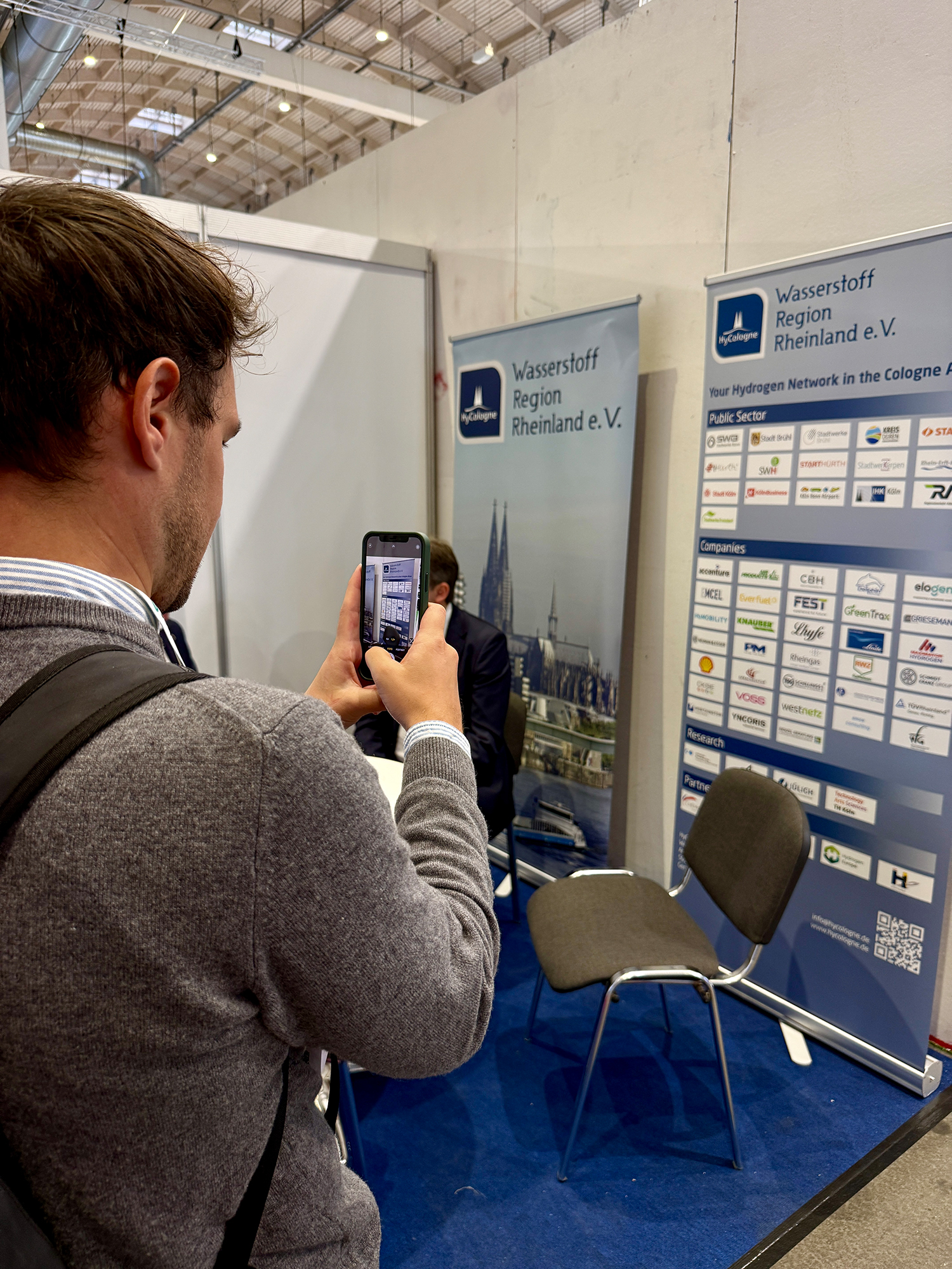 Nicht nur HyCologne war auf der Hydrogen Technology World Expo mit eigenem Stand vertreten, sondern auch mehrere unserer Mitglieder. Auf unseren täglichen Rundgängen haben wir bei ihnen hereingeschaut – und andere kamen bei uns vorbei. Begleiten Sie uns ein Stück bei unseren Besuchen: