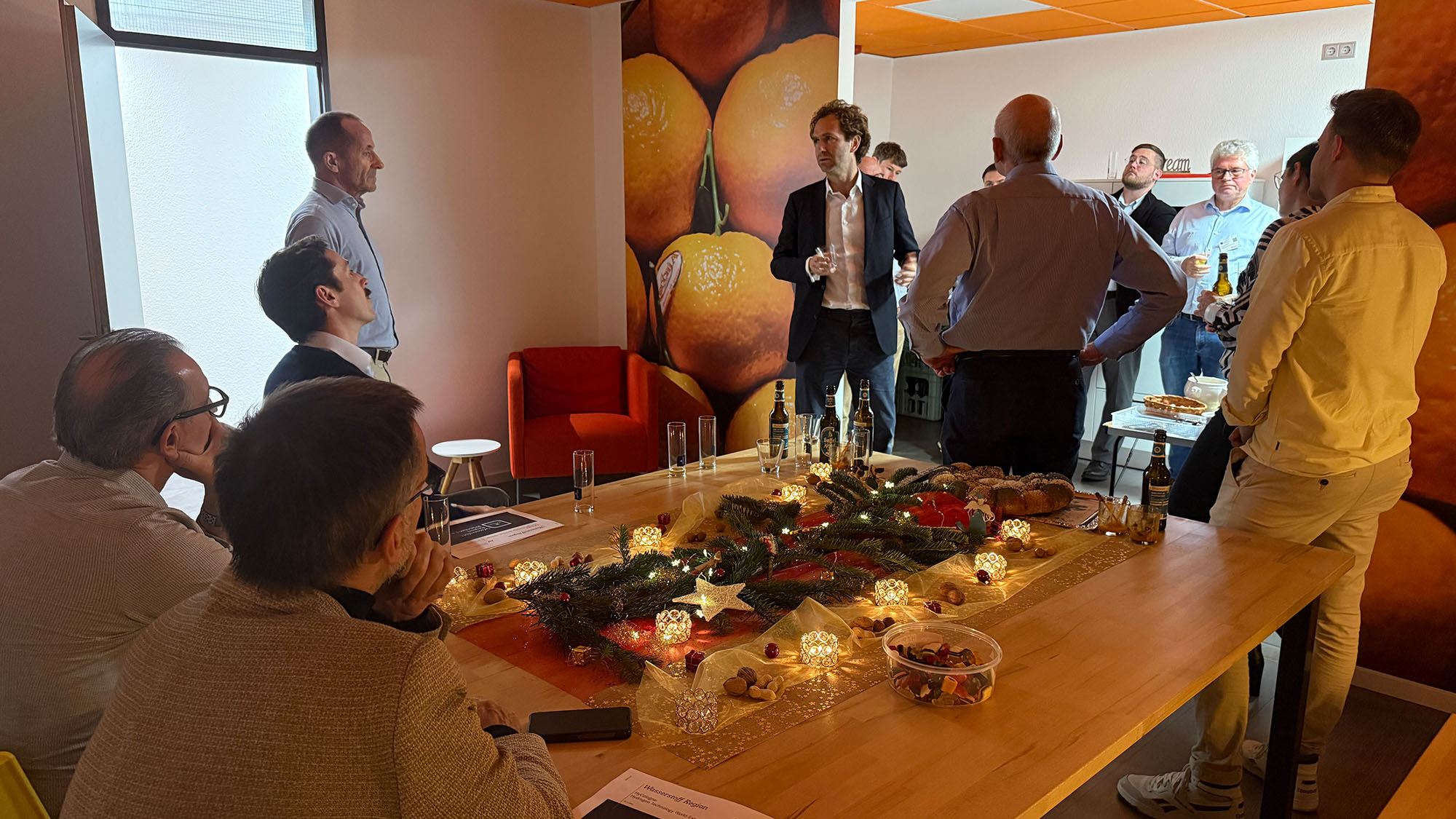 Vorträge gab’s im Gegensatz zu unseren Netzwerkkonferenzen bewusst keine. Nur Mortimer Glinz, Geschäftsführer unseres neuen Mitglieds Schmidt Kranz Group, stellte kurz sein Unternehmen vor, was er vermutlich auch noch nie zwischen Küche und Pausenraum getan hatte. Ein guter Impuls, der direkt in die persönlichen Gespräche einfloss. Auch ein anderer Unternehmensvertreter hatte den Mitgliedsvertrag bereits unterschrieben im Auto liegen. Dazu mehr im nächsten Jahr.