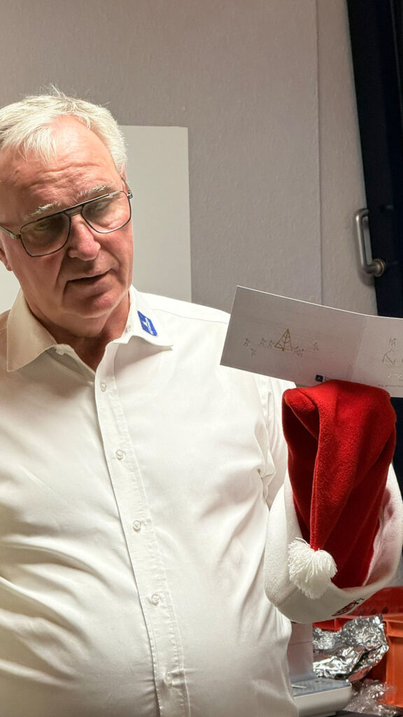 Albrecht Möllmann konnte sich übrigens nicht durchringen, beim Weihnachtsgruß die rote Weihnachtsmann-Mütze aufzusetzen. Er hielt sie in der Hand. Auch das lässt sich symbolisch sehen: